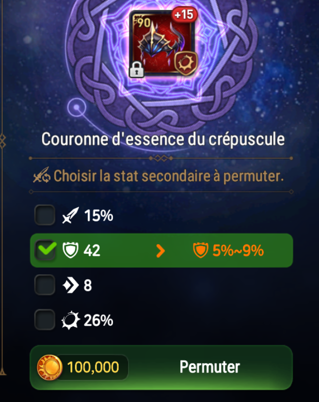 Il est seulement possible de permuter un équipement quand il sera +15, peu importe le niveau de votre équipement. Il est cependant conseillé d'utiliser ses pierres de permutation sur des équipements de niveau au minimum 85.