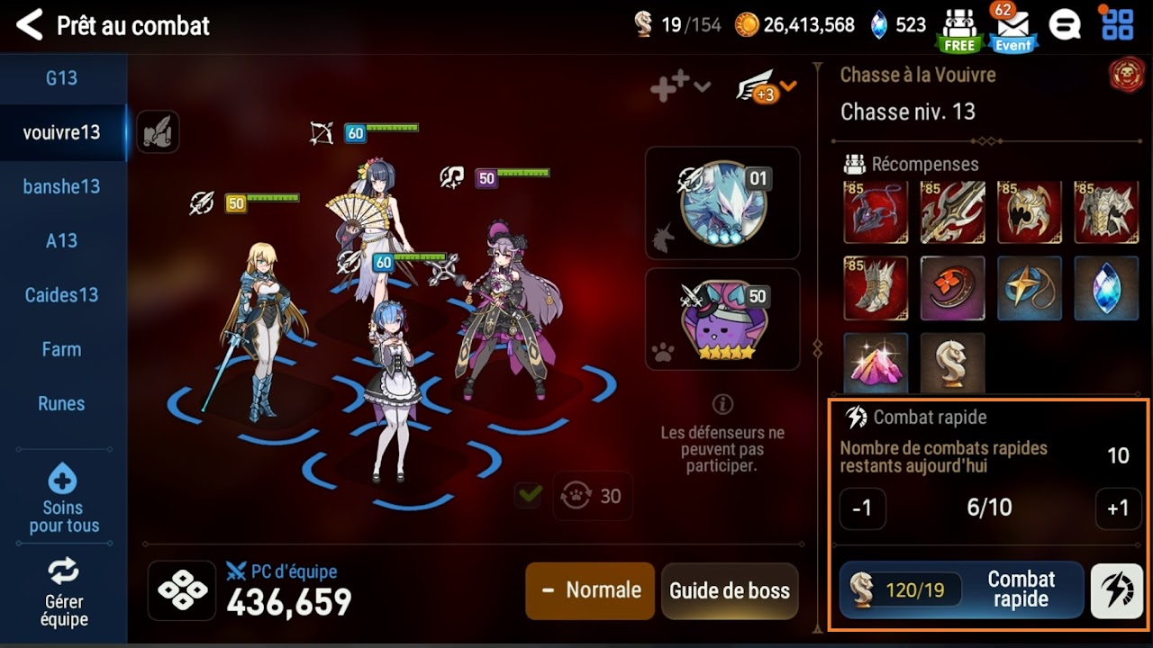 Depuis quelques mises à jour, il est possible d'effectuer 10 combats rapides par jour gratuitement.