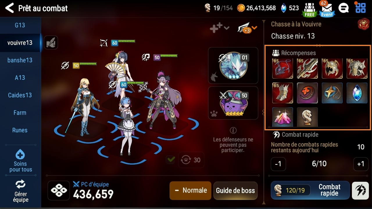 En plus des équipements et des matériaux de fabrication, les chasses vous permettront de récupérer quelques invocations, skystones, poudres de savoir ou énergie aléatoirement.