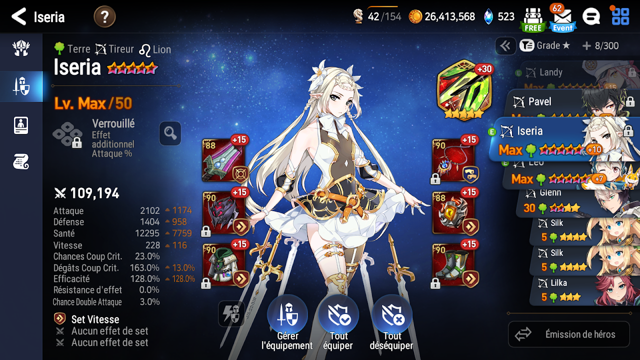 Iseria 220/240 speed, 65% efficacité, artefact d'elphelt, Nakhwol ou SOS