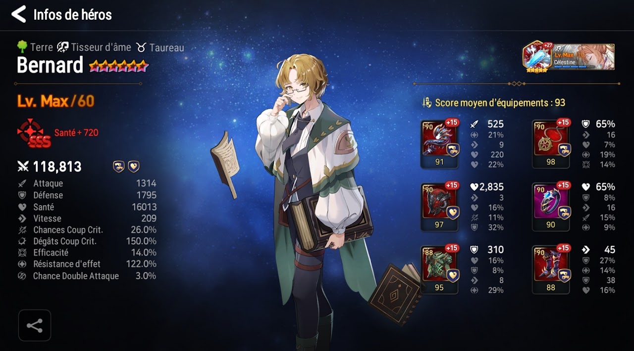Bernard avec le plus de santé possible en set contre-attaque requis. Il faut des bottes vitesse et pas mal de vitesse. Celestine est un artefact utile.
