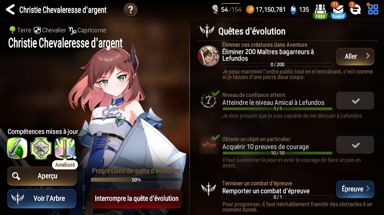 Vous ne pourrez effectuer que 2 évolutions en simultané. Il y aura 3 quêtes d'évolution à effectuer pour débloquer un combat d'épreuve qui validera votre évolution.